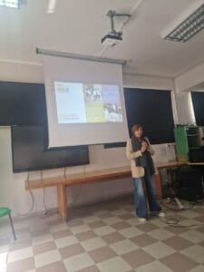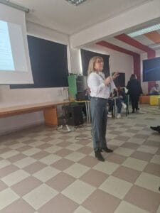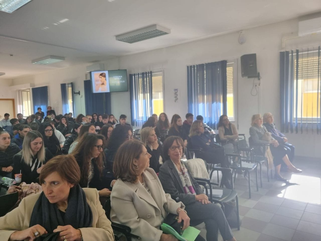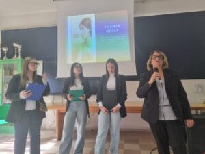 La prof.ssa Di Liberti introduce l'intervento di tre studentesse della classe 5L